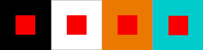 How color behaves in relation to other colors and shapes is a complex area of color theory. Compare the contrast effects of different color backgrounds for the same red square.